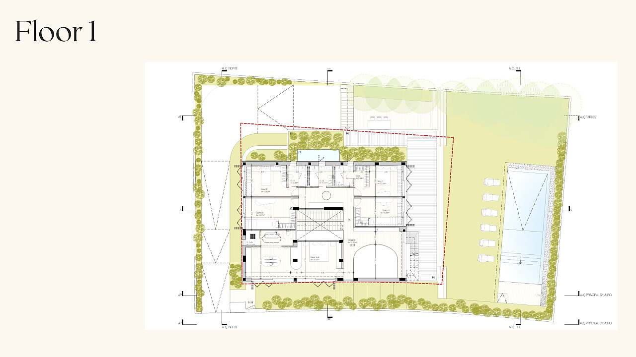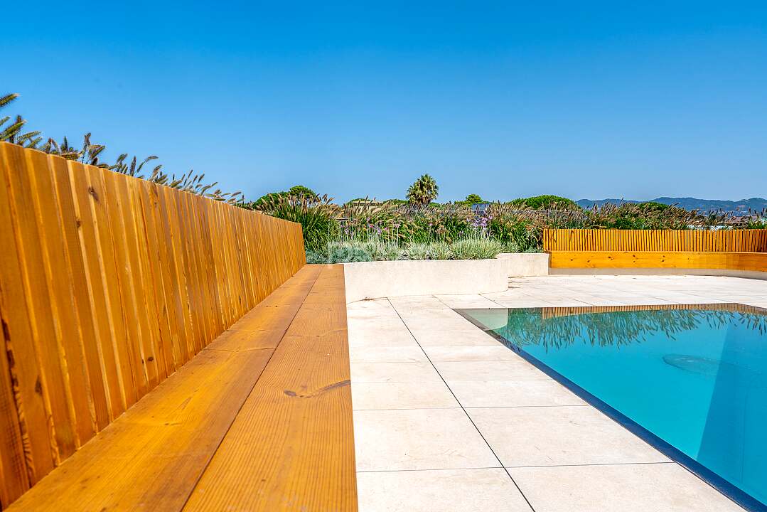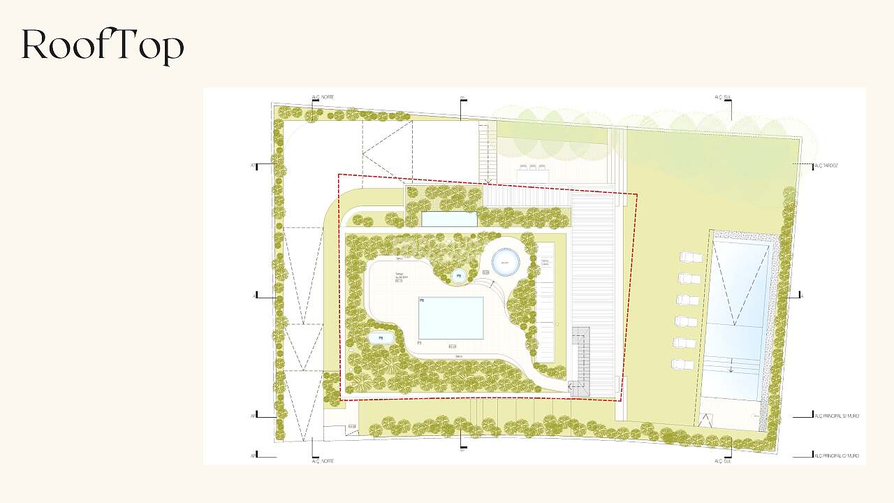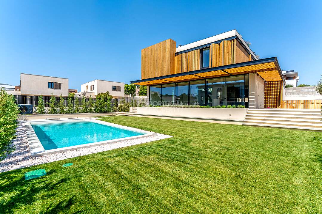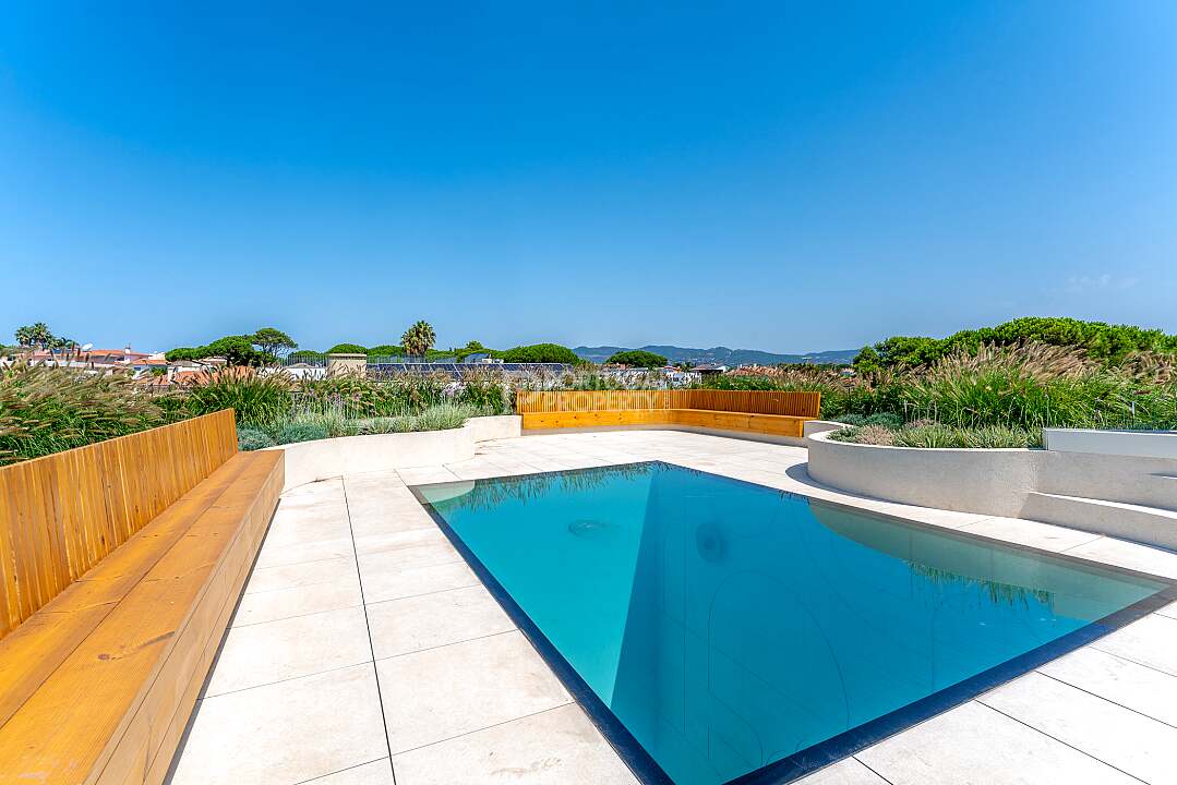 Beyond its spacious and light-filled interiors, the home offers a range of bespoke amenities designed for comfort and leisure. Notably, the stylish 50 m² heated swimming pool, the rooftop garden with a jacuzzi, the cozy cinema room, the laundry, pantry, storage room, and spaces prepared for a gym and wine cellar allow residents to create unforgettable moments with friends and family. For even greater privacy, there is an additional room, separated from the private areas, which can easily be converted into a maid's room.