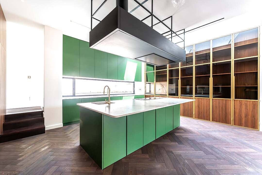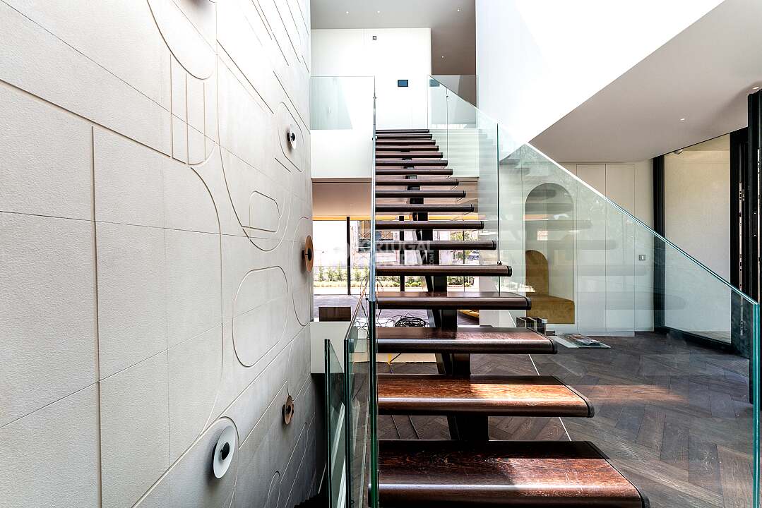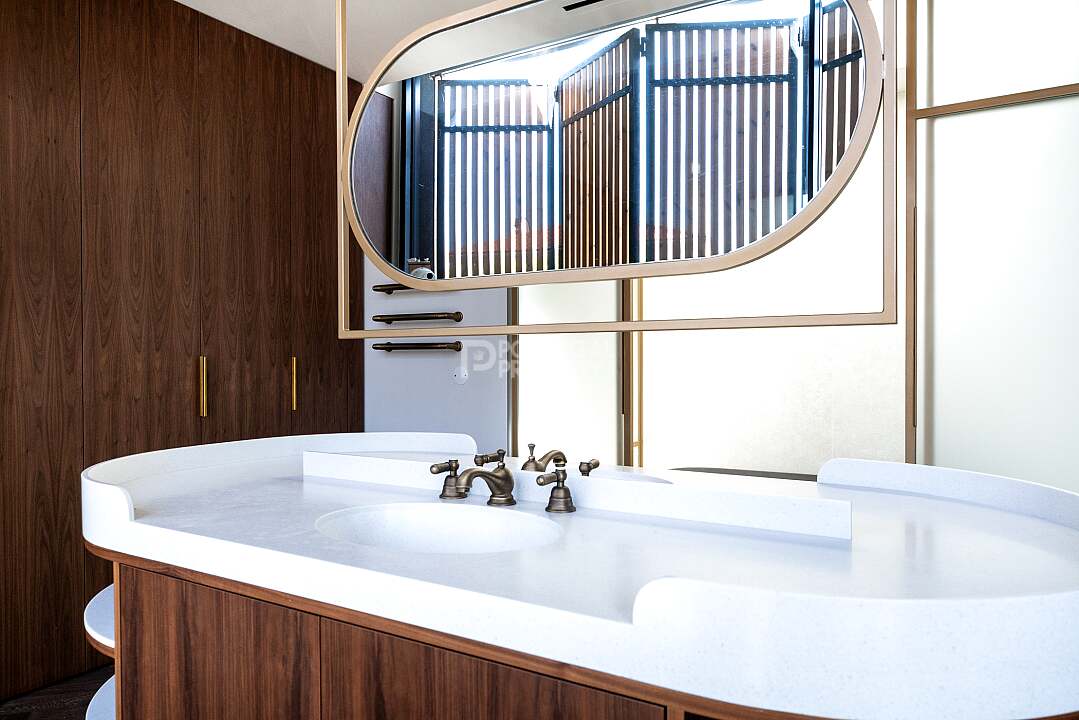 Reimagined with artistry to balance the classic with the modern, the home blends luxurious materials with a timeless aesthetic, creating a unique and welcoming environment. The Herringbone Prime wood flooring throughout adds character and warmth, while the renowned Gaggenau appliances bring advanced kitchen technology, elevating the culinary experience to new heights. The Stone Ceramic fixtures and ceramics chosen for the bathrooms reinforce the discreet elegance and sophistication of the design.