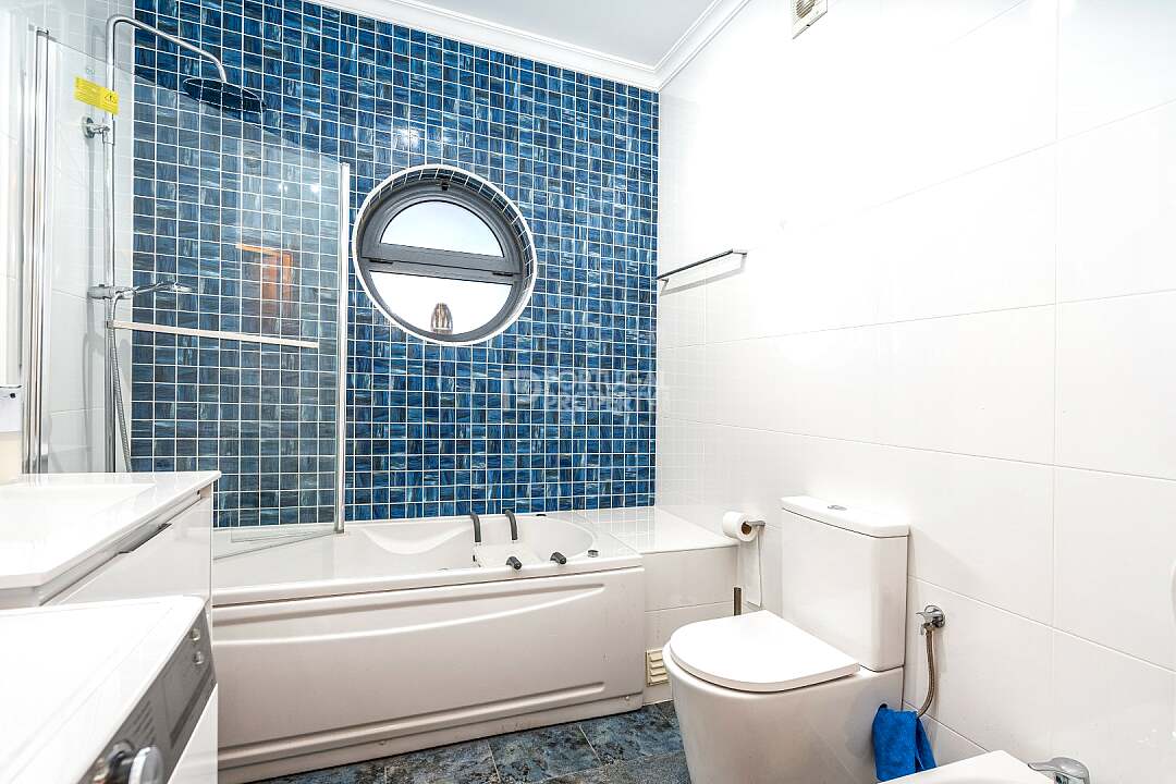 The hallway leads to three generously sized bedrooms, each designed for maximum comfort. All bedrooms are fitted with built-in wardrobes and air conditioning units. The master suite offers a private balcony with scenic mountain views, as well as an en-suite bathroom featuring a luxurious jacuzzi bath. The second bathroom, shared by the other two bedrooms, has been tastefully updated with modern fixtures. One of the bedrooms is currently utilised as a bright and airy office space, making it ideal for remote work or creative pursuits. Additional storage is available in the form of a convenient linen cupboard in the hallway.