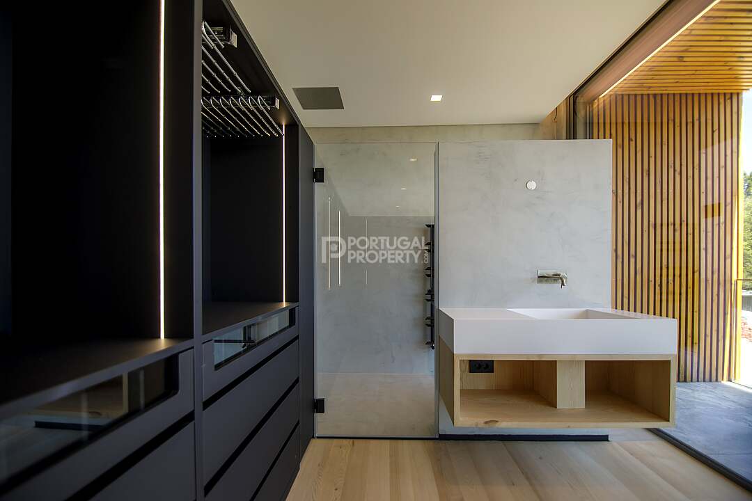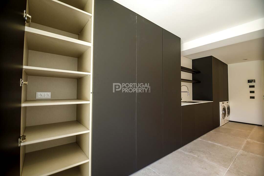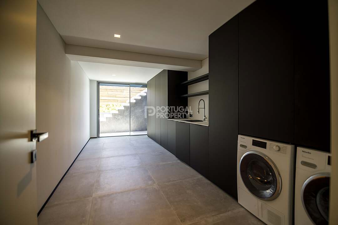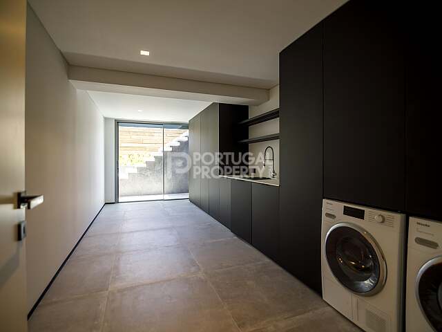The lower ground floor spans 200m² and is an extension of both comfort and functionality. The 90m² garage with automatic glass door leads into a complete leisure area: games room, bar, fully glazed gym with natural light, laundry room, and a convenient laundry chute accessible from all bedrooms.