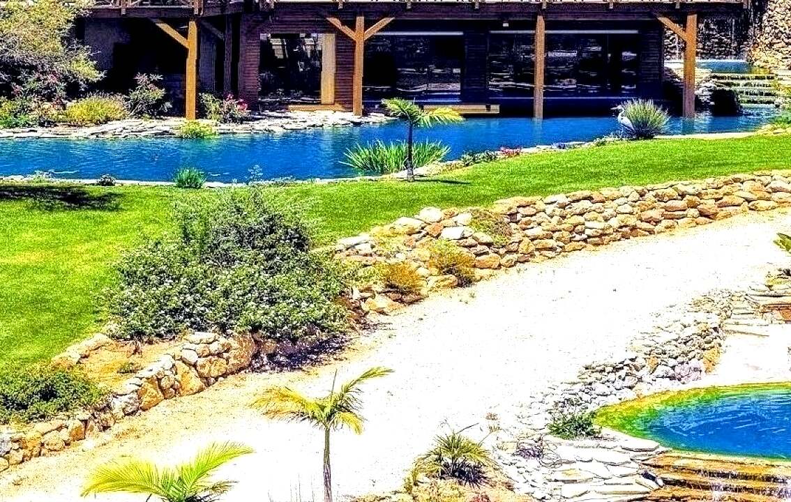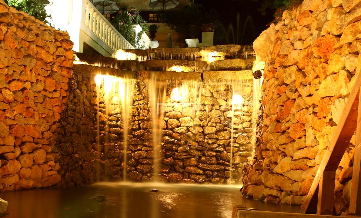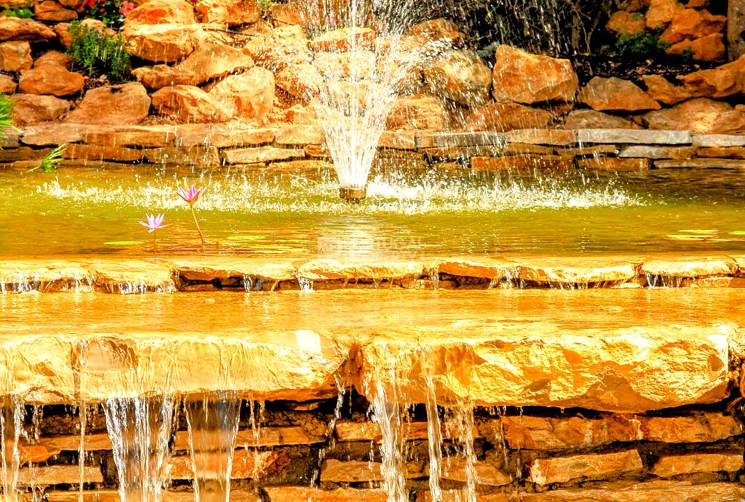 Substantial gardens, waterfalls, lakes, water jets and koi ponds.
