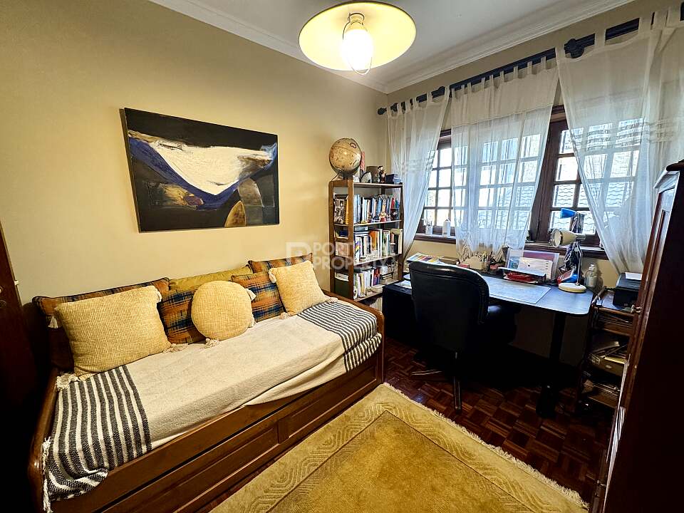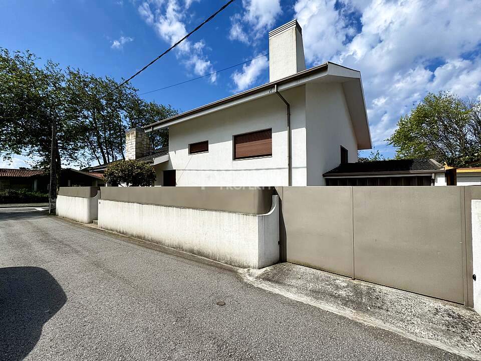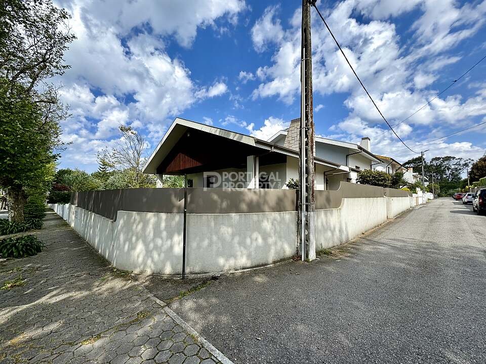 Just 480 metres from the coast, this unique four-front villa sits in a quiet residential area of Francelos, Vila Nova de Gaia. Offering a total construction area of 355 m² (3,821 sq ft) on a 520 m² (5,597 sq ft) plot, it combines generous interior spaces with a serene outdoor garden of approximately 305 m² (3,283 sq ft).