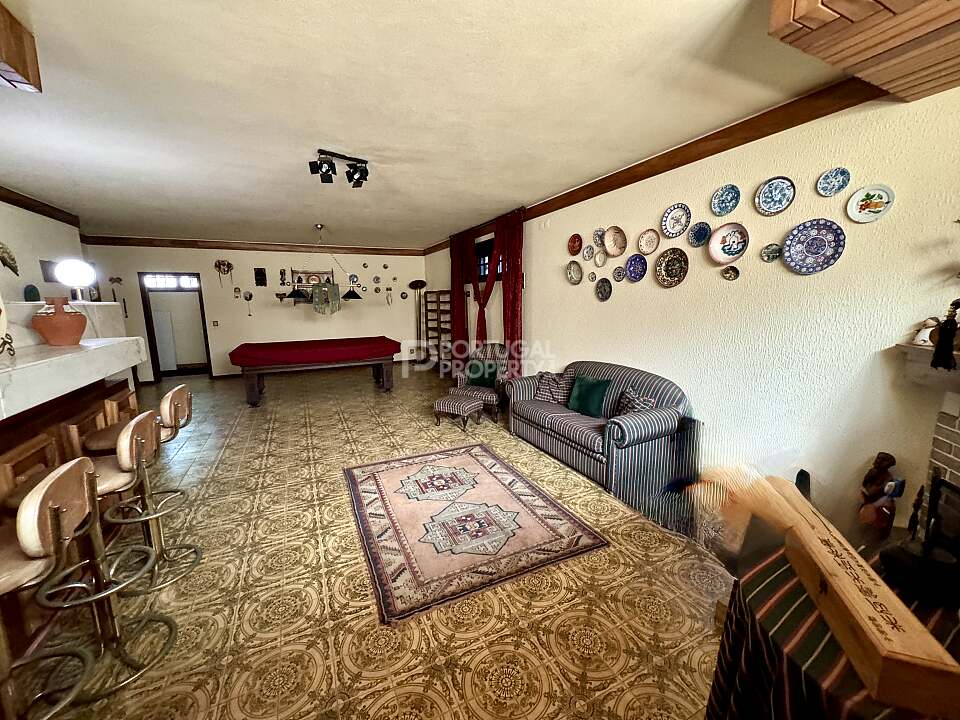 The basement (110 m² / 1,184 sq ft) provides excellent additional living and leisure space. It includes a large lounge with a fireplace, bar area, and billiard table, all lit by natural light. There's also a wine cellar and ample storage.