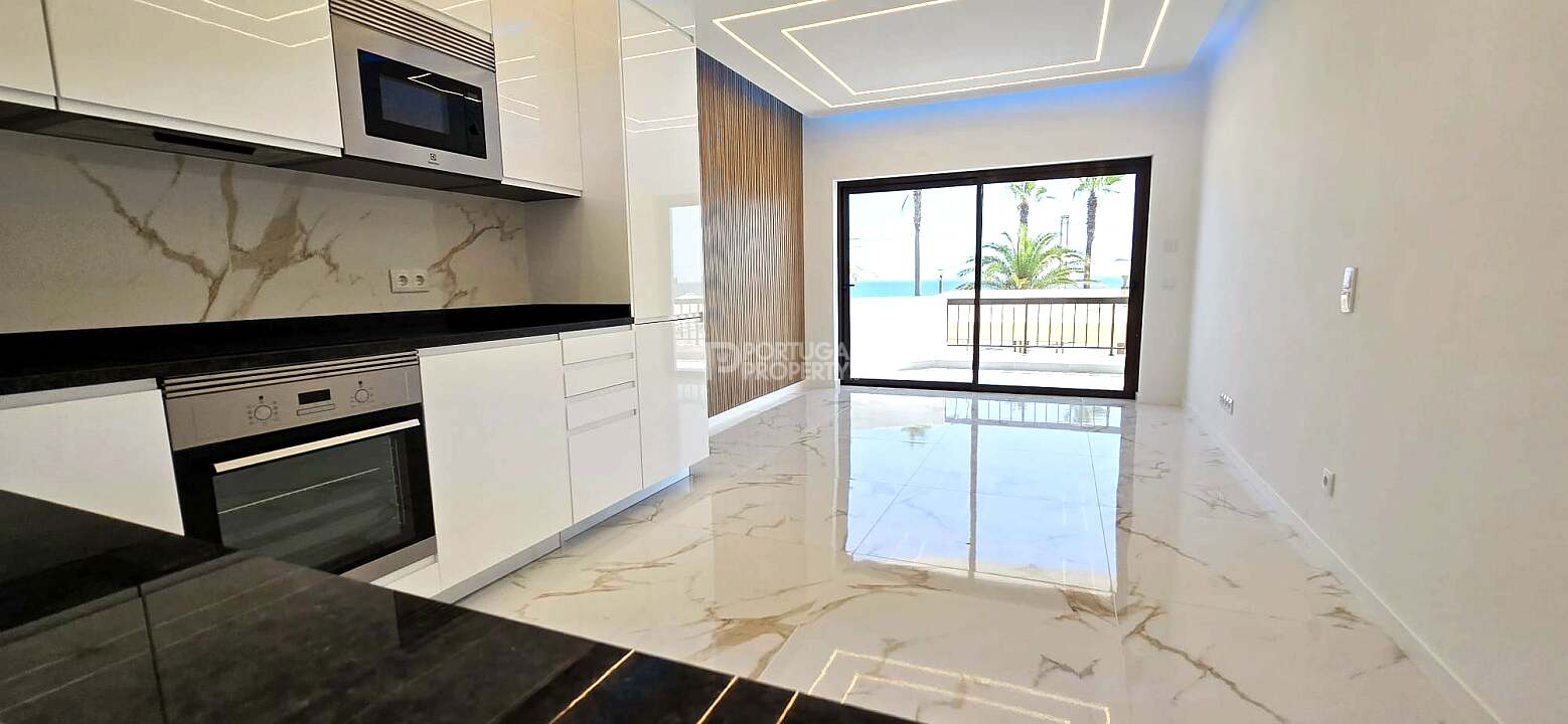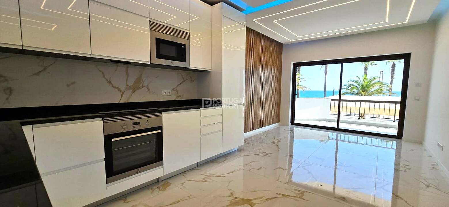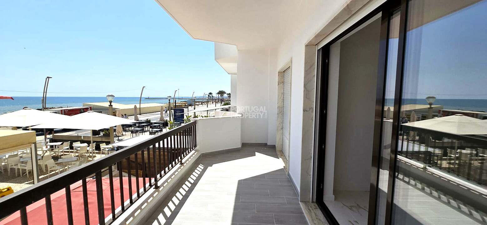 Discover this bright and stylish 3-bedroom apartment located on the first line of the beach, offering breathtaking ocean views and direct access to the Quarteira promenade.