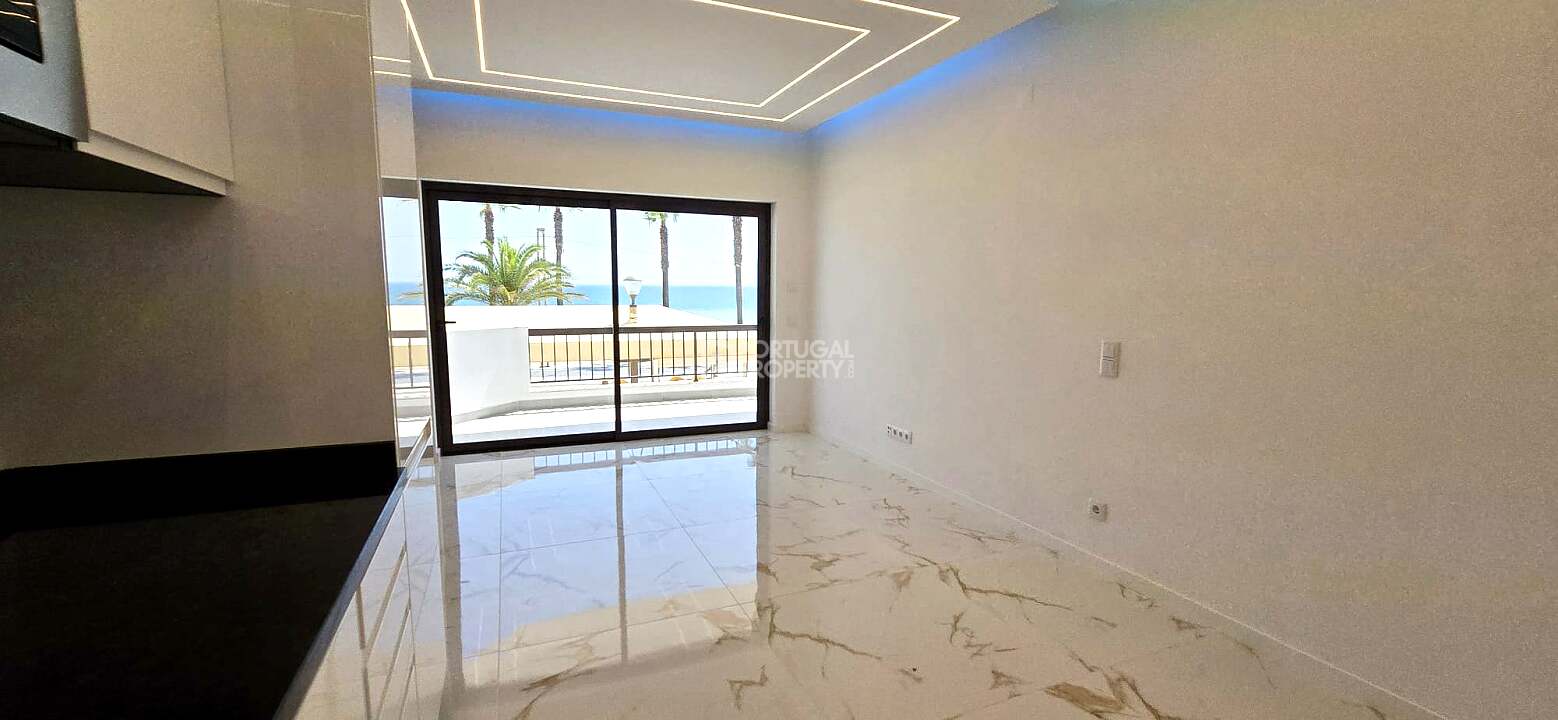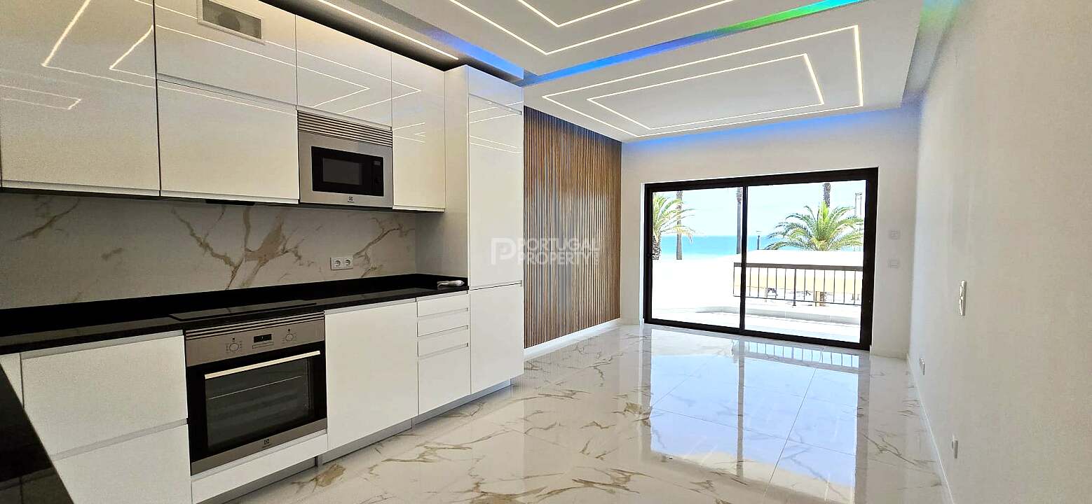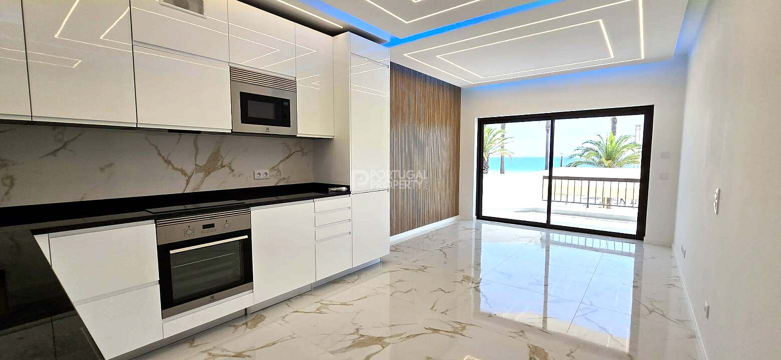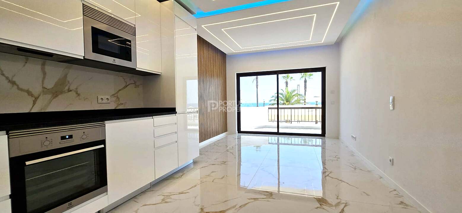 Discover this bright and stylish 3-bedroom apartment located on the first line of the beach, offering breathtaking ocean views and direct access to the Quarteira promenade.