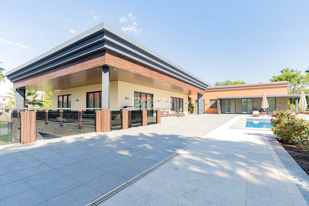 The villa’s architecture draws inspiration from contemporary Mediterranean sensibilities – clean lines, warm tones, and an earthy palette. Locally sourced natural stone clads both interior and exterior surfaces, grounding the home in its environment while exuding timeless elegance.