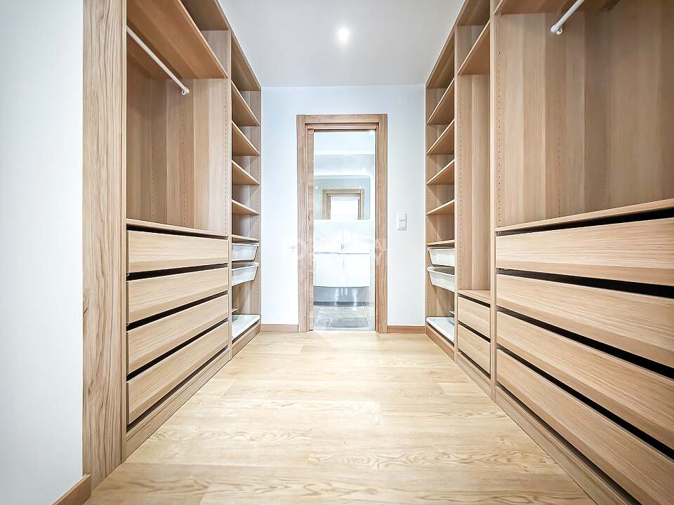 Upstairs you'll find three additional bedrooms, one of which is en suite with a walk-in wardrobe. The house is bathed in natural light across all levels, with composite wood flooring and a stunning marble staircase adding to its elegant finish. The top floor leads to a large roof terrace with 360-degree views, a perfect spot to soak up the Lisbon sunshine by day or unwind under the stars at night.