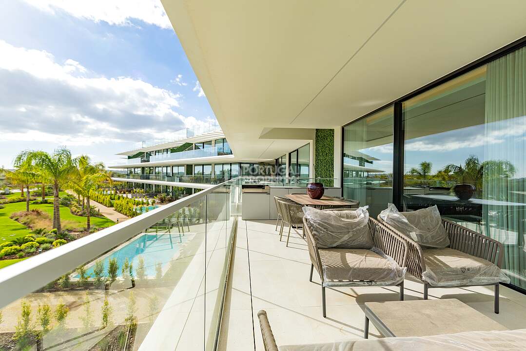 Nestled within the prestigious golden triangle of Vilamoura, The Creek represents the pinnacle of refined Algarve living. This exceptional 2-bedroom apartment, spanning a meticulously crafted 128 m², stands as a testament to uncompromising luxury in one of Europe's most sought-after destinations. Designed by celebrated architect Vasco Vieira of Arqui+ renowned for his bold, contemporary visions across Vale do Lobo, Quinta do Lago, and international locations from Miami to Dubai, this residence offers an unparalleled opportunity for the discerning buyer.