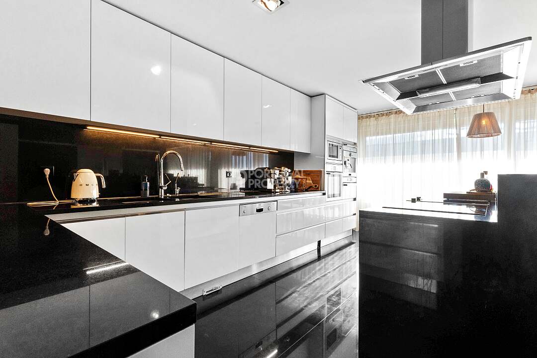 The penthouse spans two levels and is designed with comfort and modern living in mind. Floor-to-ceiling windows frame sweeping ocean panoramas and fill every room with natural light. The open-plan living and dining area opens onto a spacious terrace - the perfect place to entertain or simply enjoy the sunset.