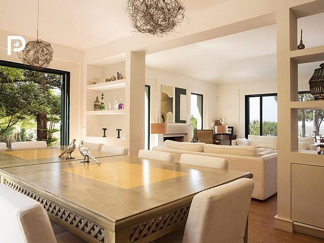 The house has 5 bedrooms, of which 3 are ensuite bedrooms and the other 2 bedrooms share a bathroom. The bedrooms have french windows facing the garden. There is a big living room with big glass sliding doors facing the garden as well, leading to an exterior area with a big table for outside meals. The dining room with 12 seats is opened to the living room and the kitchen, which is modern and fully equipped.