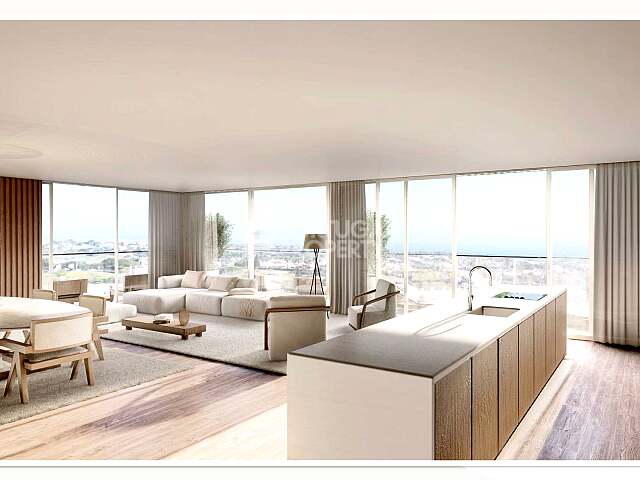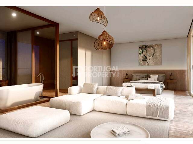 This apartment was designed to blend the indoor and outdoor areas as the Algarve is known for its sunny year-round weather and excellent climate. The living room, kitchen, and bedrooms all present floor-to-ceiling windows, with ocean views throughout.