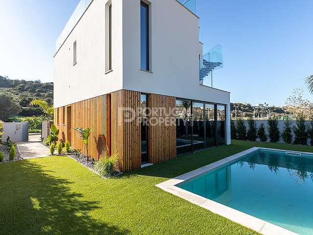 This stunning, brand-new, modern detached villa is conveniently inserted in the Albufeira marina, in a small, new urbanisation within walking distance of the beach and amenities. It comprises a basement, ground floor, 1st floor and rooftop terrace, totalling 150 m2 of habitable space (ground and first floors) plus a 68 m2 basement. This villa impresses with exceptional high-quality finishes throughout. It is set on an easy-to-maintain, landscaped plot with a private swimming pool. There is the possibility to park cars inside the property.