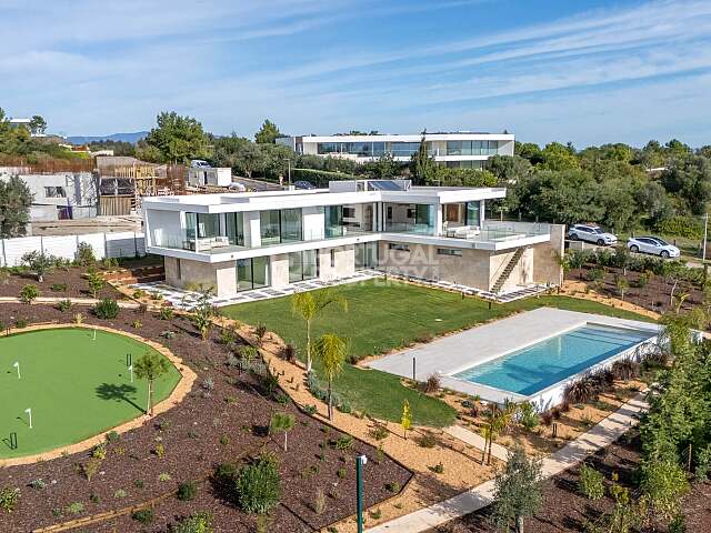 This stunning villa, currently under construction, is situated in the prestigious Palmares Golf Resort. Boasting a prime location, the property offers breathtaking sea views and is just steps away from the renowned Meia Praia beach and the Alvor Lagoon. Combining opulence and comfort, it is conveniently close to all amenities, services, and the vibrant Lagos Marina.