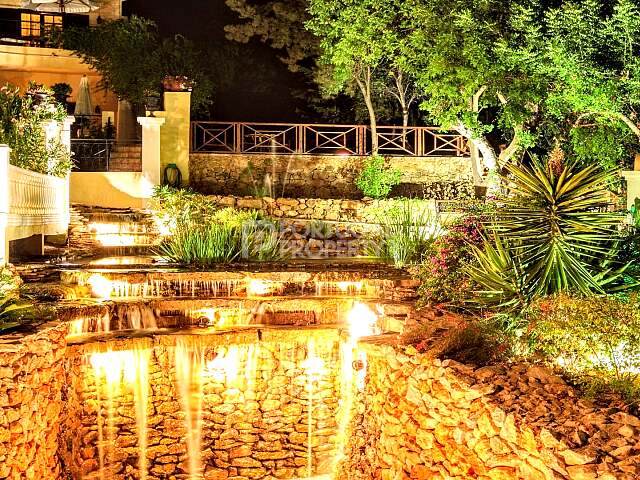 Substantial gardens, waterfalls, lakes, water jets and koi ponds.