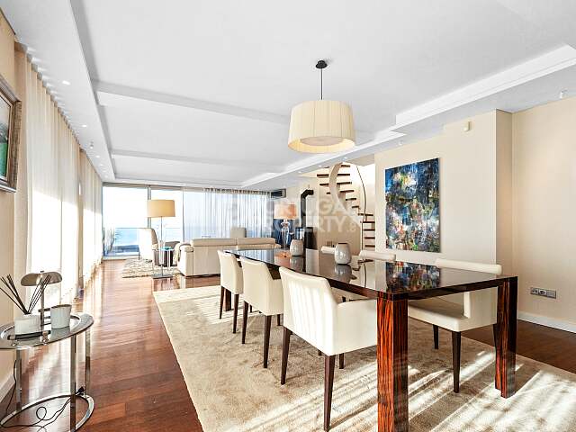 The penthouse spans two levels and is designed with comfort and modern living in mind. Floor-to-ceiling windows frame sweeping ocean panoramas and fill every room with natural light. The open-plan living and dining area opens onto a spacious terrace - the perfect place to entertain or simply enjoy the sunset.