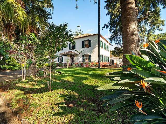 Centenary property on a 1600 m2 plot, with a 667 m2 mansion divided into 4 floors, featuring 5 rooms, 2 high-ceilinged living rooms, a kitchen, 3 bathrooms, and a porch. Outside, there is a closed garage for 2 cars, 2 large warehouses, a vineyard, a centenary tree, and flowers and plants native to Madeira. Located in a prestigious neighbourhood of Funchal, with numerous services nearby.