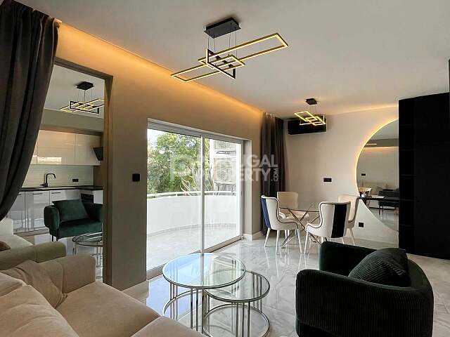 Open-Plan Living & Kitchen: Modern, fully equipped kitchen seamlessly integrated with the living area, opening onto a spacious balcony.