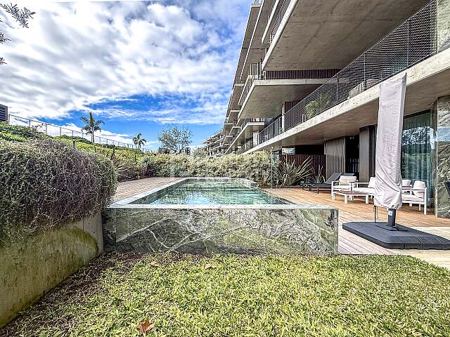 Outside, the property offers a spacious terrace with a private swimming pool, providing a true private retreat for leisure and relaxation. Elegant steps lead directly to the communal areas and the shared swimming pool, allowing residents to enjoy the resort-style amenities while maintaining a high level of privacy.