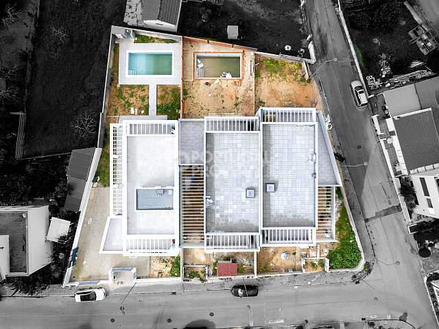 The upper floor offers privacy and a well-organised bedroom zone with a master suite bedroom with private bathroom, a second bedroom with terrace access, an additional TV room or office that can serve as a potential third bedroom, a shared bathroom, a storage room and a circulation hall with a staircase. Several rooms benefit from terrace access and open views.