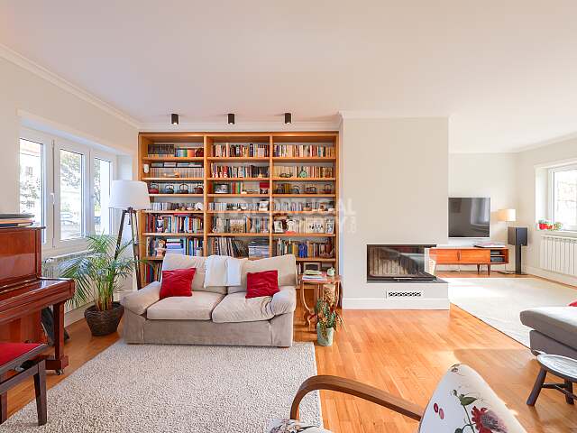 Inside, the house is spread over two well-organized levels with generous, light-filled spaces. A large open living and dining area connects naturally with a modern kitchen and the garden, creating an ideal setting for everyday living and entertaining. Wooden floors throughout both levels add warmth and continuity, while large windows bring in sunlight all day.