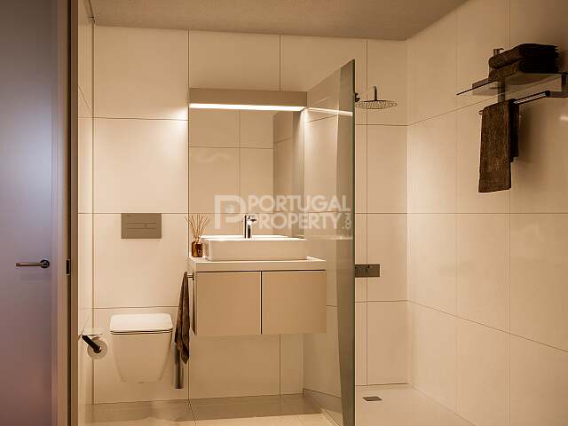 The condominium offers a unique combination of leisure and lifestyle amenities, including extensive landscaped gardens, swimming pool, padel court, gym and children’s playground, all within a secure and private environment in Porto.