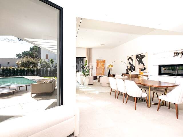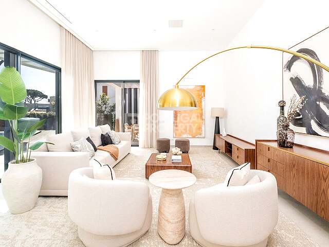The principal living area is spacious, bright and effortlessly flowing, opening directly onto a beautifully landscaped private garden. Here, a swimming pool, sun terraces and an outdoor dining area with barbecue create an exceptional setting for year-round enjoyment of the Algarve climate, whether for relaxed family living or refined entertaining.