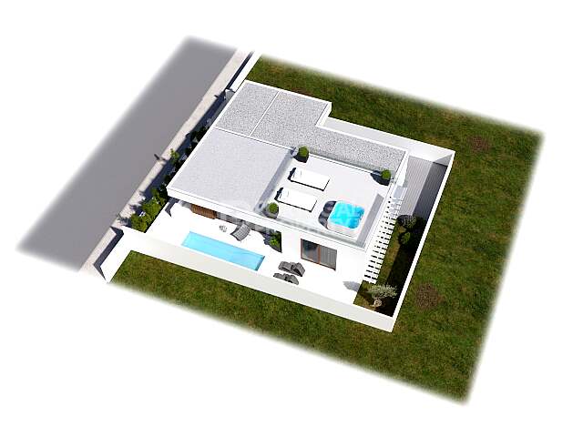 The property features a rooftop terrace with panoramic views, offering a private setting to relax, entertain, or simply enjoy the surroundings from an elevated perspective. The jacuzzi shown in the visuals is available as an optional upgrade and can be included at an additional cost.